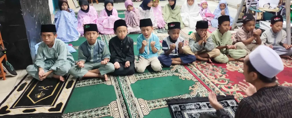 4). Belajar agama Islam dengan materi Bahasa Arab, fikih, aqidah akhlak, dan Al-Qur’an Hadits setiap ba’da shalat Isya.